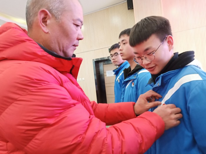 校团委书记、政教处主任蒙小建在典礼上宣读了2020年下半年新发展团员批准决定,并为通过考核的232位学员颁发结业证书,10位党员教师为新团员佩戴上鲜艳的团徽。仪式最后,新团员代表2019级计算机4班杨俊霏带领全体新团员面向团旗庄严宣誓。