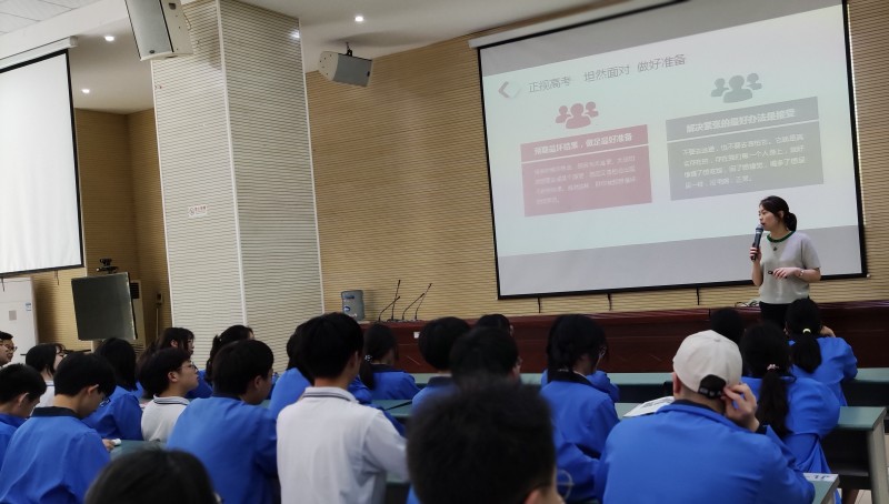 高三的考前减压团体辅导活动,以“为梦想而战”为主题,为高三学子加油打气。通过“蝴蝶抱抱”暖身活动放松身体活跃气氛积极投入活动当中,感受相互间的支持与协作。主题活动“珠行万里,志在千里”,通过协作获得成功体验。同时开展“调整心态,从容应考”为主题的考前心理讲座,引导同学们在剩下的复习阶段克服困难砥砺前行。