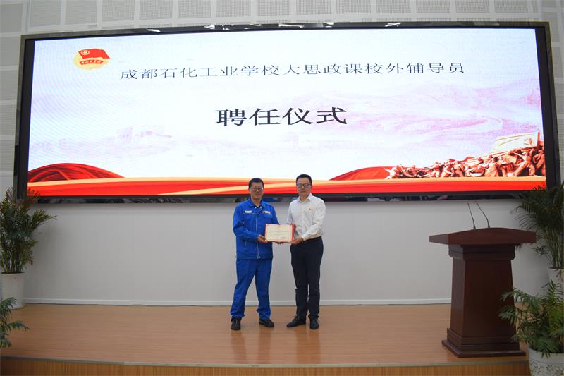 仪式上,学校聘任“四川工匠”、中国石油四川石化有限责任公司工程师刘昕担任大思政课校外辅导员,为思政教育注入新活力。刘昕结合职业教育发展与工匠精神培养发言,勉励团员学生勇于担当、敢于创新,将个人理想融入国家与民族事业,为实现中华民族伟大复兴贡献力量。